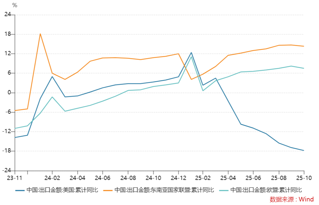 图1:我国对美国出口收缩的缺口被东盟和欧盟弥补